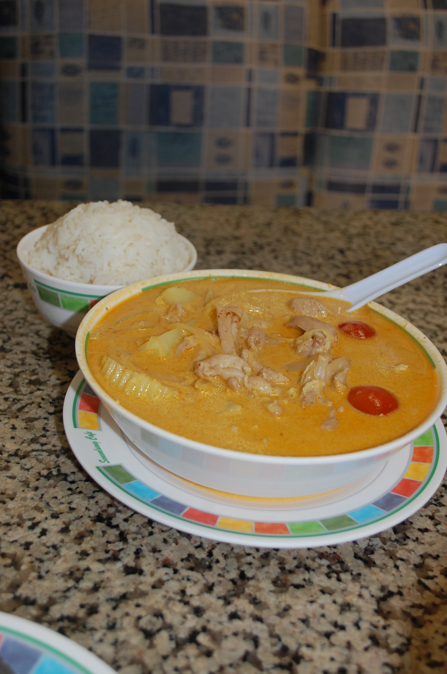 My friend said that we must try the Emperor’s noodles, because it’s her favorite dish and she orders it every time. She asked the waitress to hold the squid. On a simple plate arrived a mound of wide and flat rice noodles with scrambled eggs, chicken and shrimp. The orange colored sauce on top was divine. When I asked the waitress what ingredients were in the sauce, she would not divulge their secret. It was heavenly. Next, we tried the yellow curry with chicken, potatoes and onions in coconut milk. Silly me, to ask for brown rice. I received a “you’ve got to be kidding” look from our server and was told that they only serve white rice. The curry was mild per our request, yet lacked the carrots and sweetness I enjoy from my favorite Thai restaurant.