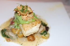 Our personable waiter suggested a few of the guests’ favorite appetizers. We started with lightly tempura squash blossoms filled with ricotta and served in a small pool of golden tomato with basil puree. It looked prettier than it tasted and lacked the burst of flavor I expected. Next, arrived the lobster salad with three ounces of lobster on a bed of arugula, fennel, avocado, grapefruit and lentil flatbread that was shaped into a pyramid. This dish offered just the right amount of zing with the white sherry vinaigrette complimenting the poached lobster nicely. My favorite appetizer was the black ink spaghetti with Dungeness crab, crisp snap peas, sea urchin butter and gremolata (lemon zest, garlic and parsley) crumbs. Very satisfying.