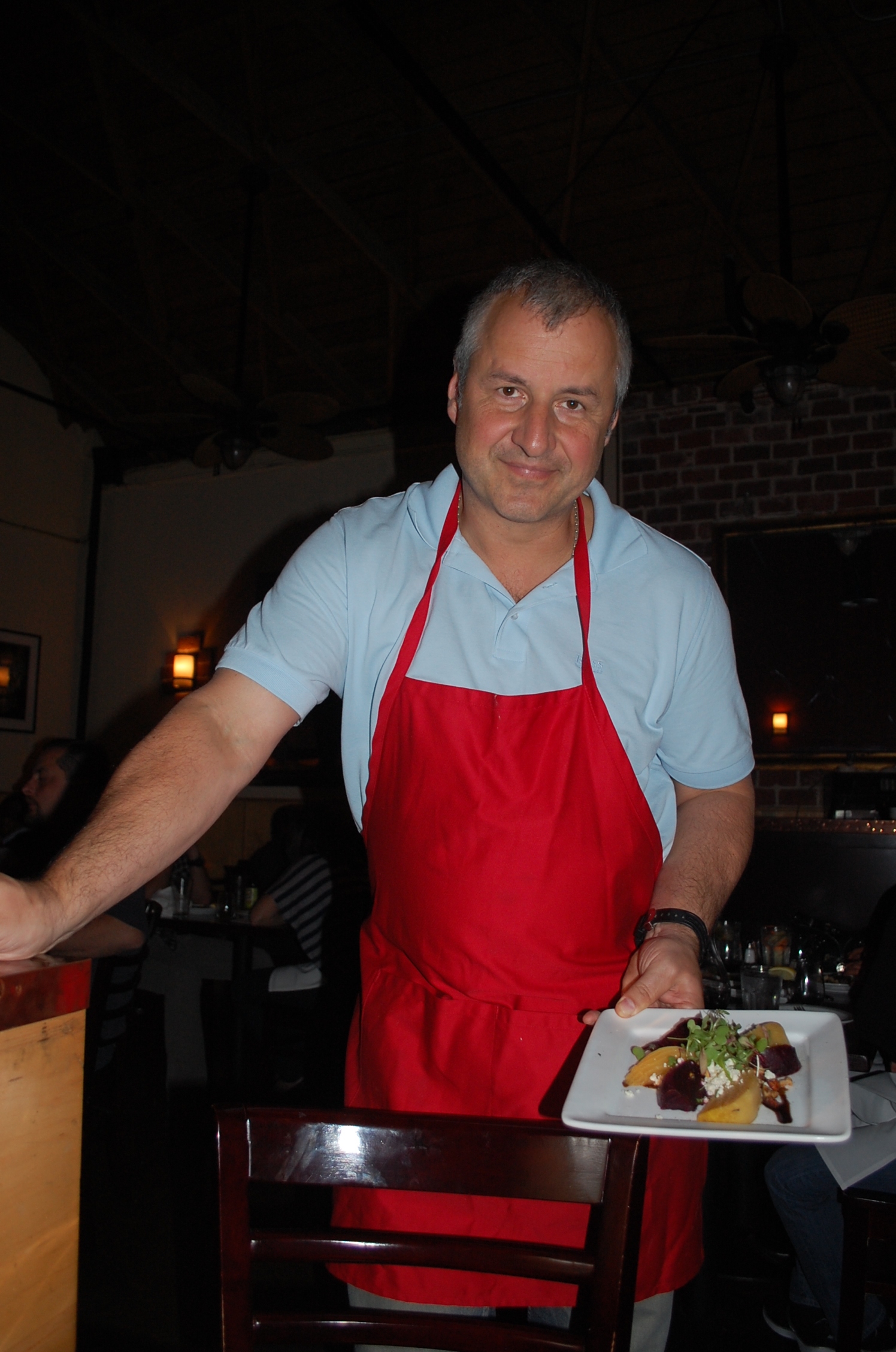 Walking into the Blu Jam Cafe off Melrose Avenue, we immediately noticed the colorful artwork hanging on the wall. I asked the owner/Executive Chef, Kamil Majer, about the whimsical pop art. “I display different artists each month to keep it fun,” Majer said.