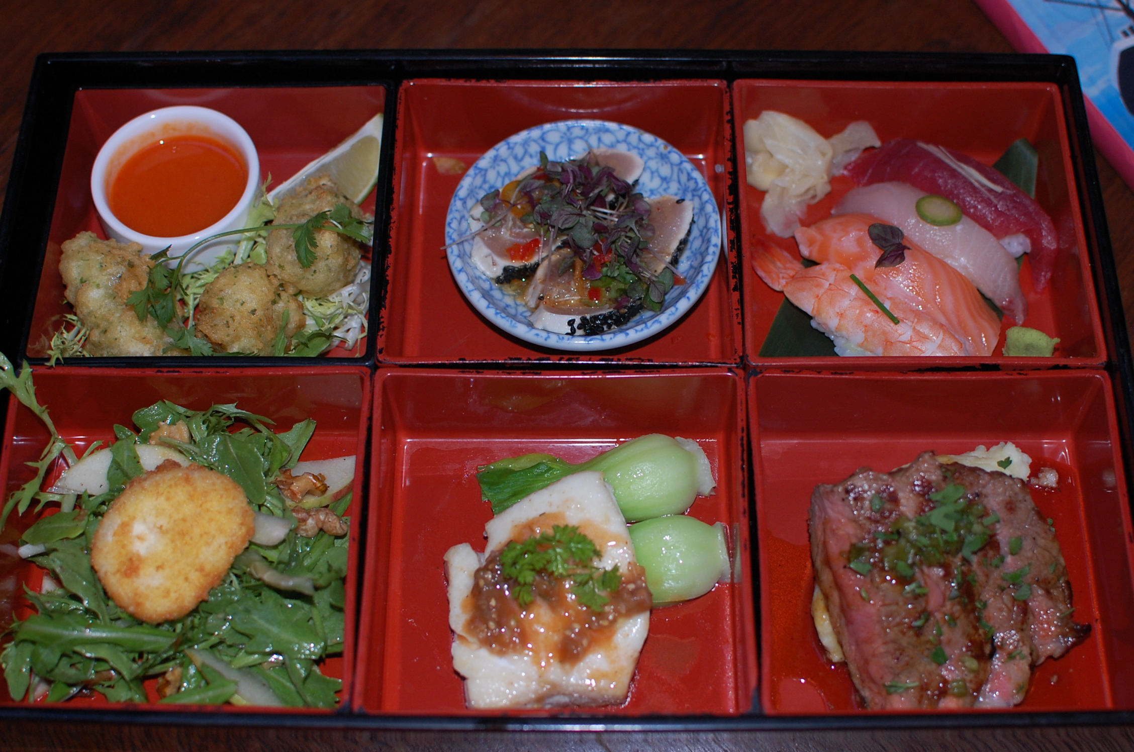 Walking along Flower St. next to high-rise buildings, I was lured into CHAYA Downtown’s Japanese Beer Garden by the enticing smell from the hibachi grill. Yakitori skewers of chicken, beef, shrimp, shiitake mushrooms and bacon wrapped dates seductively perfumed the outdoor dining patio.