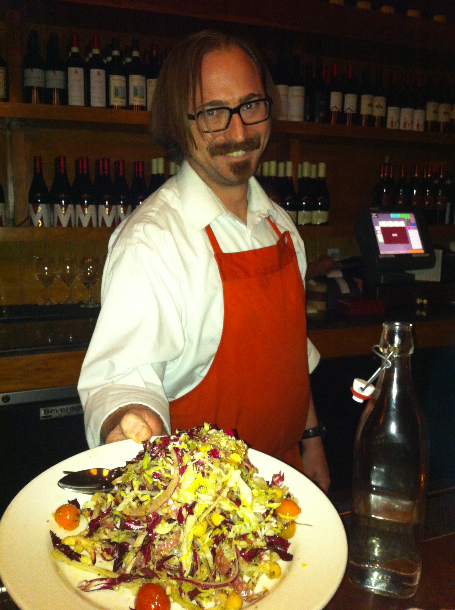 As we sat down, Sean, the bartender and our server, had a friendly personality that made us comfortable sitting at the bar. He handed us a roll of wax paper with four crispy bread sticks inside. These crunchy sticks are made fresh daily at La Brea Bakery (originally owned and created by Silverton) and served warm at Pizzeria Mozza.