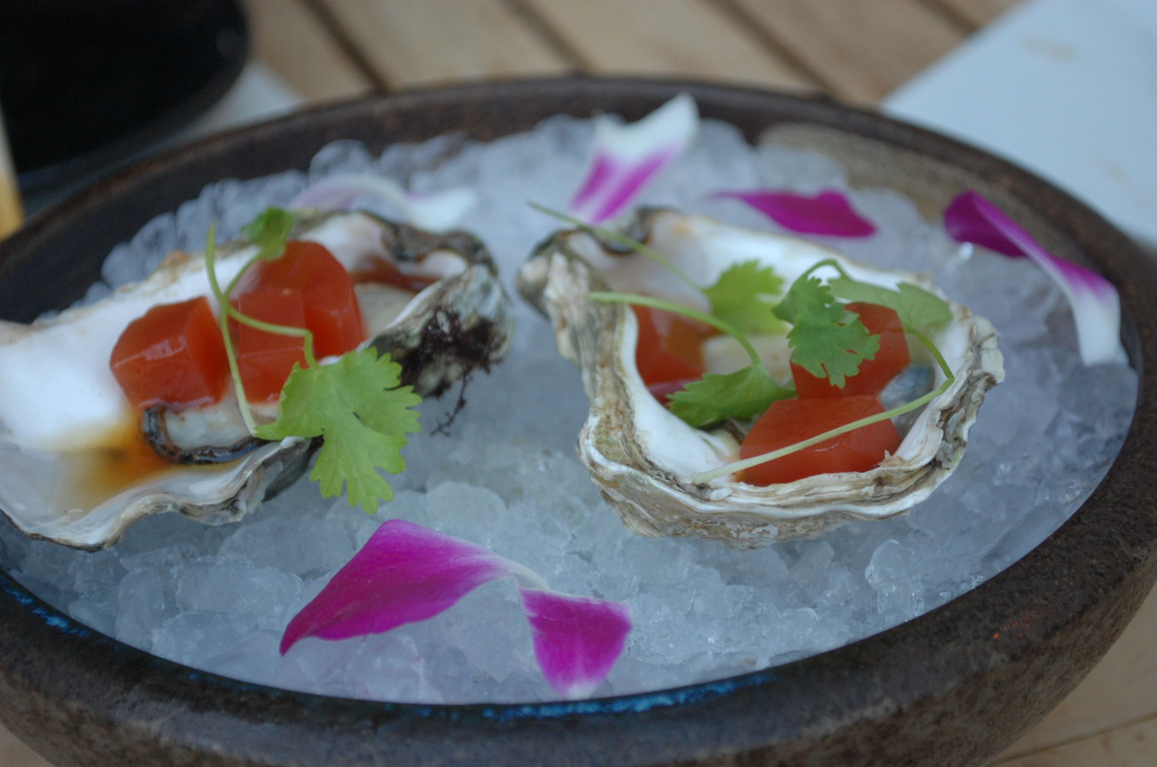 The restaurant is located in a beautiful 1920s building that shares space with Miramax Films. Originally built as an apartment building for the entertainment elite, you never know who you might see while sitting in comfortable chairs next to heaters and flaming tiki torches.