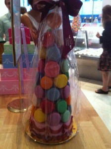 With a seven-year old yanking my hand, I knew she couldn’t wait more than a few minutes. Instead, we walked up to the candy-colored pastry counter and browsed the refrigerated cabinet filled with wrapped sandwiches and salads. We purchased a couple sandwiches, pastries and some drinks to take to a nearby park in the FIDM campus.