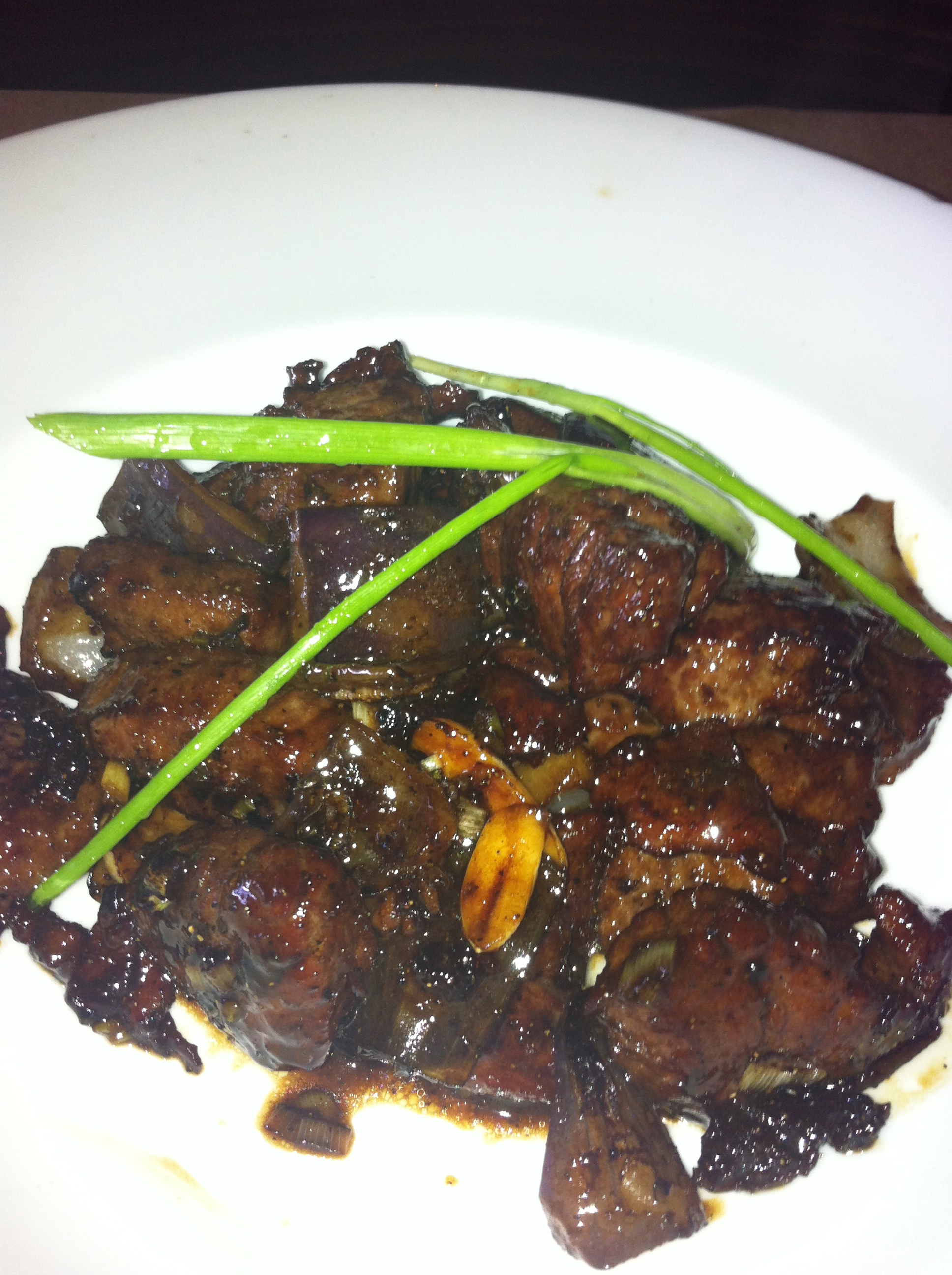 My friend Gerry arrived just as Aaron brought out his favorite dish, the black pepper beef mignon. Tender chunks of beef were quickly stir fried with onions and glazed with a rich black pepper sauce. He also brought out a plate of the crispy honey walnut shrimp with sweet honey walnuts and a few broccoli florets. “The staff all love this dish,” shared Aaron.