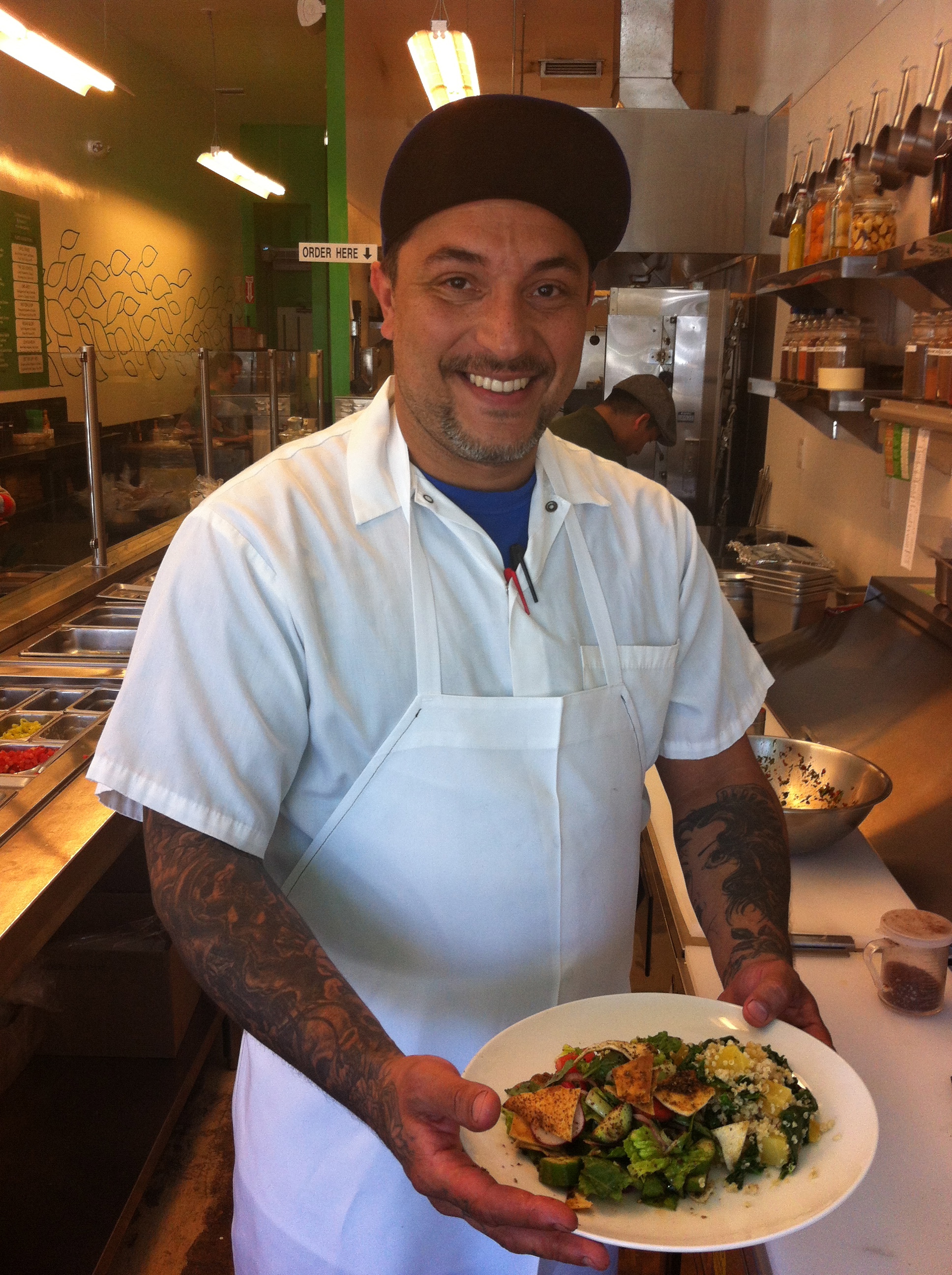 This block on Fairfax Avenue is changing and becoming a mini Greenwich Village. Joey is the type of chef who knows you by name if you come in more than once and talk to him. He likes working on Fairfax and serving the local community. Stop by, and say hello. Be sure to order a protein chop or vegan glory. Both are delicious.
