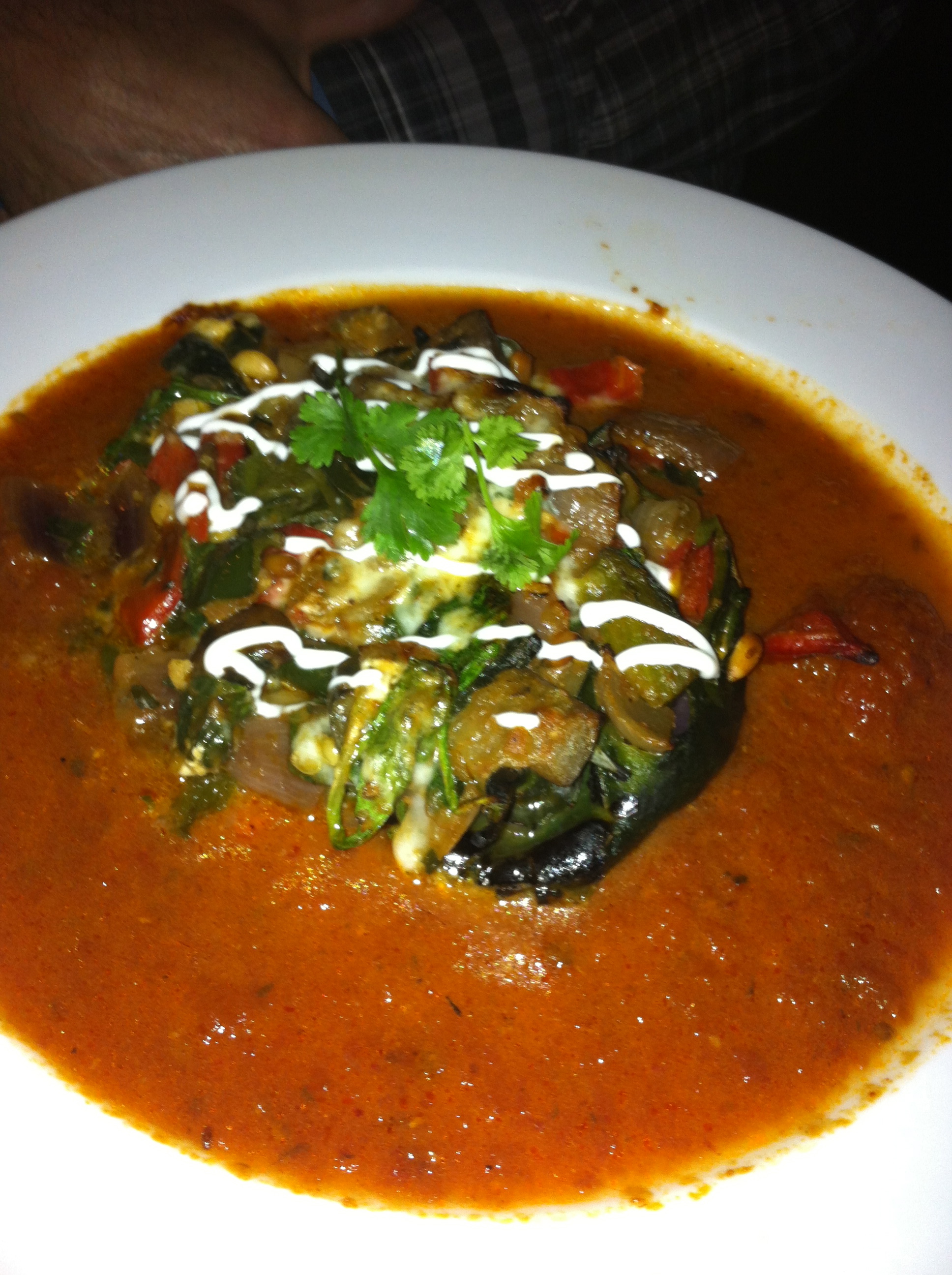 The poblano chile relleno, stuffed with eggplant, mushrooms, pine nuts, goat cheese and raisins caught my eye. It’s topped with a spicy ranchera sauce and a creamy polbano cilantro sauce. Some of the popular entrées on the main menu were duck confit tacos with sour cherry salsita and lobster enchiladas. Both pair nicely with a glass of Mexican Negra Modelo beer.