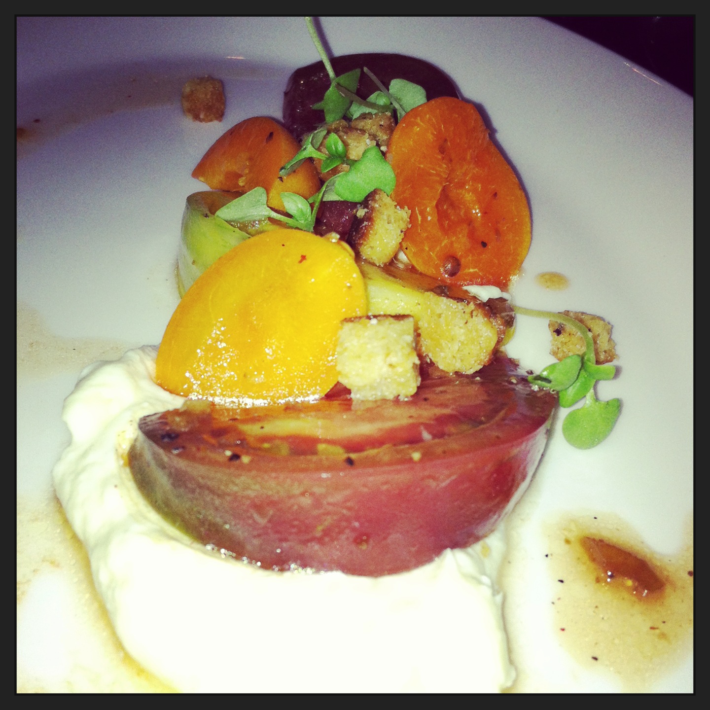 We all raved about the cousa squash carpaccio with crunchy tempura shishito peppers drizzled with a yuzu-pumpkin vinaigrette. If you love zucchini, you’ll enjoy the cousa squash. It’s a smaller, sweeter and a thinner-skinned variety of summer squash.