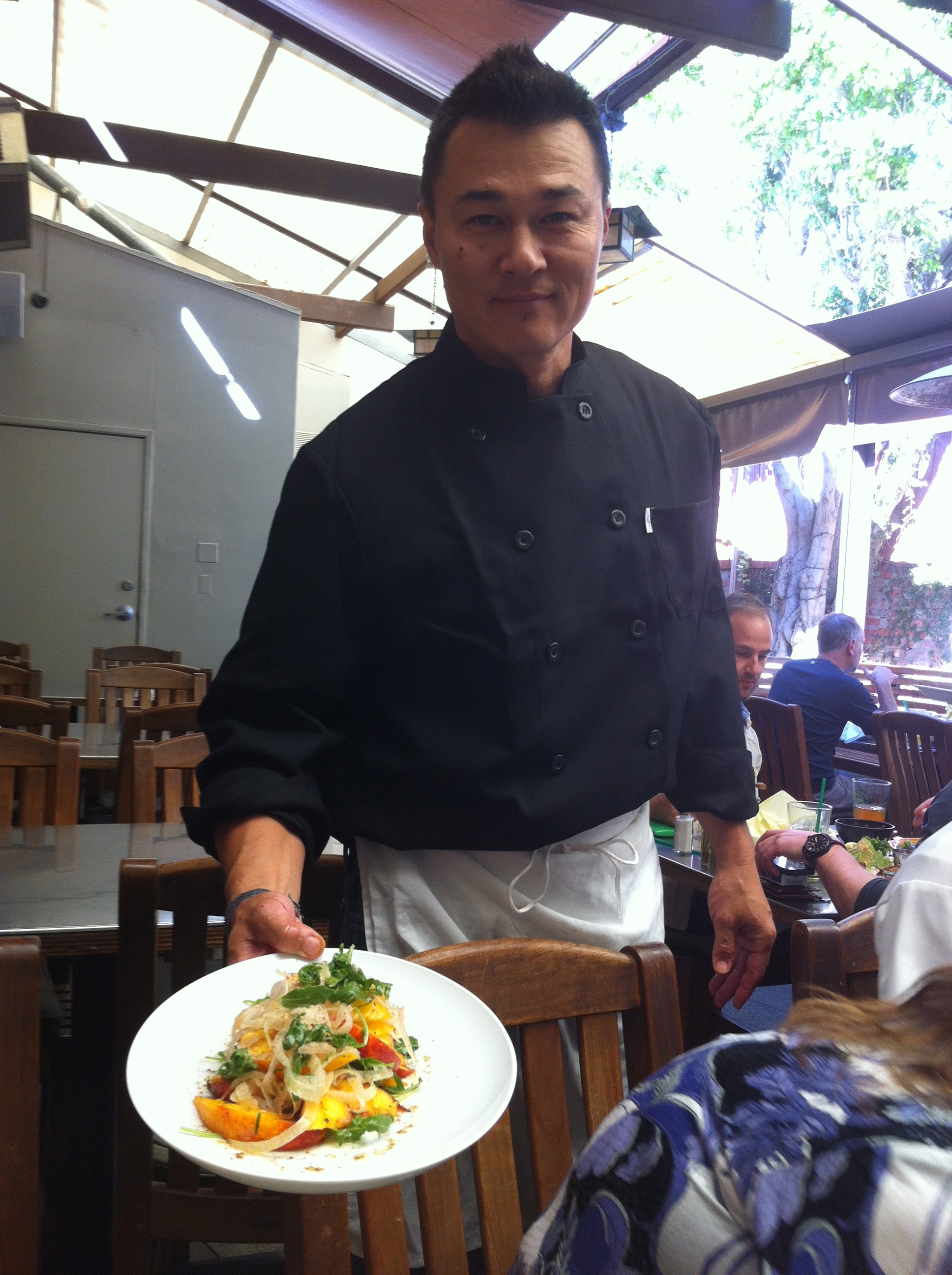 Hugenberger incorporates his passion for food by preparing dishes made from organic, local ingredients whenever possible. You can find the chef at the nearby Santa Monica Farmers Market every Wednesday.