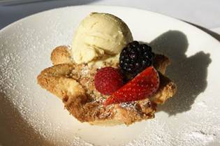 The fan favorite of the dessert menu, Pastry Chef Tonye Dunn maple berry pie with a maple berry filling and spiced streusel topping. It’s served with brown sugar ice cream. Chef Dunn’s pie crust recipe is a classic flaky, thick pie crust, and uses a variety of berries in her recipe including huckleberries, gooseberries, and blackberries. 4451 Admiralty Way (310)823-6395.