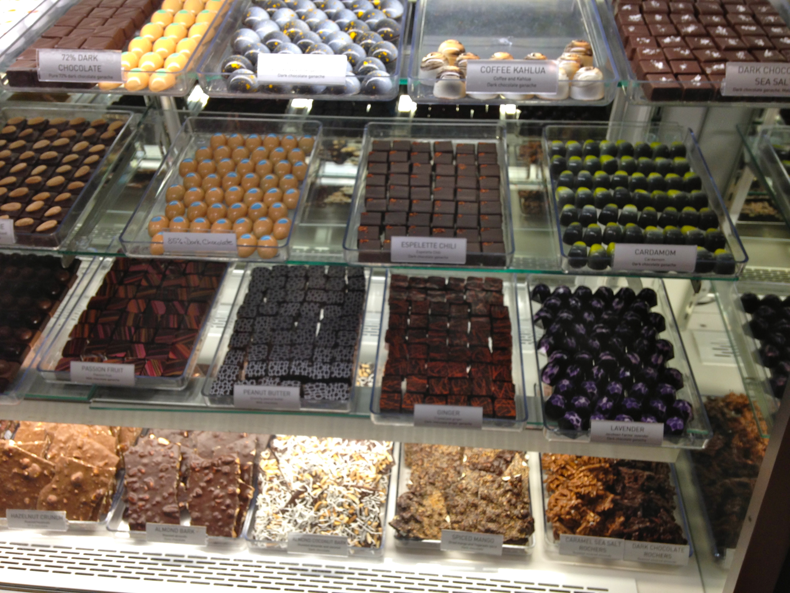 The chocolates are beautiful and shiny with whimsical designs on many of my favorites that I tasted while in the store. Have you ever