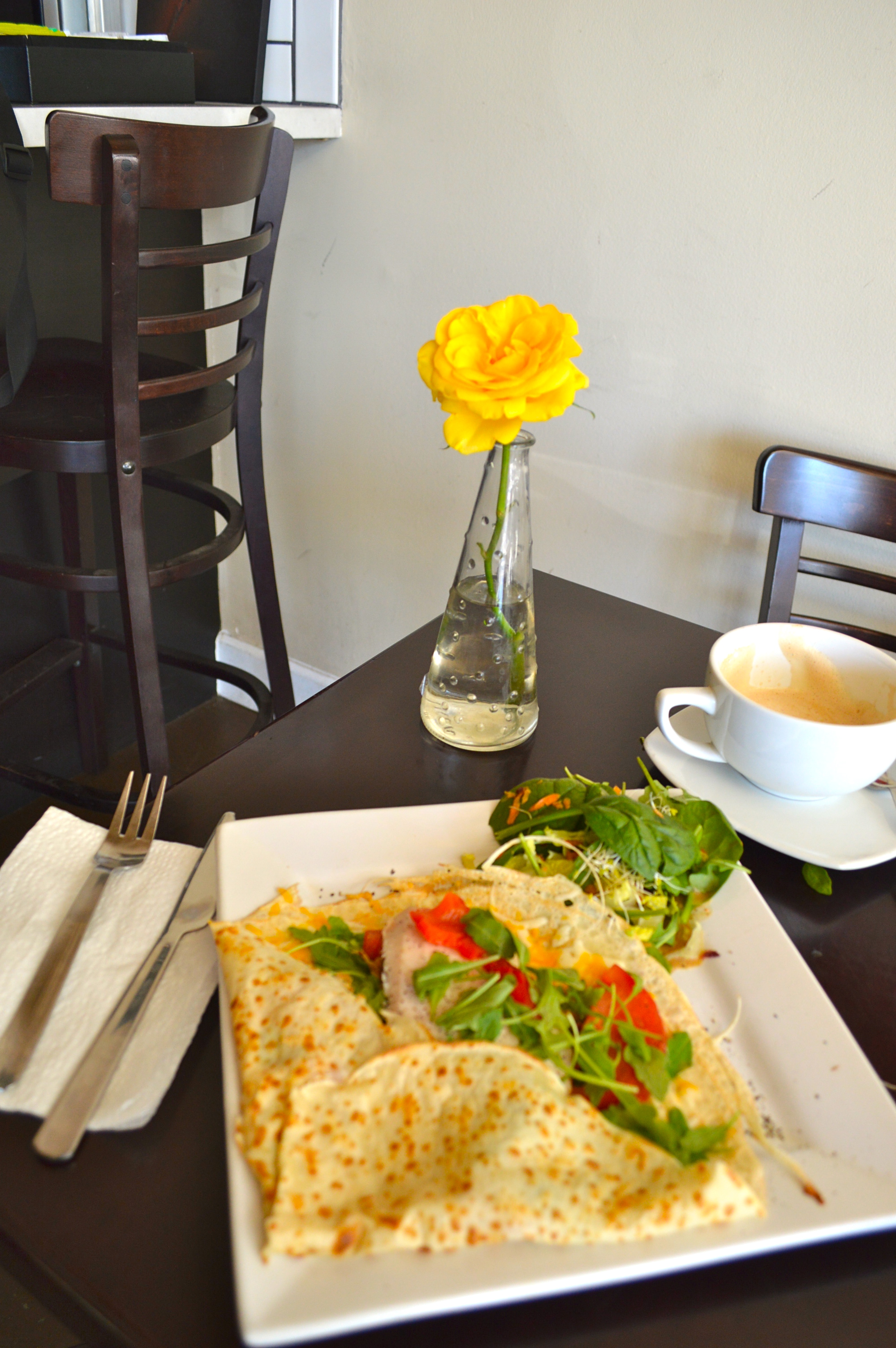 The first thing I noticed when I entered Crepes + Kitchen on Wilshire Blvd. near La Brea Ave. was the friendly greeting from the owners Yafit Barades and Jacqueline Soletzky. These ladies are genuinely nice to every person who walks in their door. They are also passionate about dogs and have a jar of treats for their furry friends who walk up to the glass door. These ladies work with No Kill LA and are always happy to help a customer looking to adopt a dog.