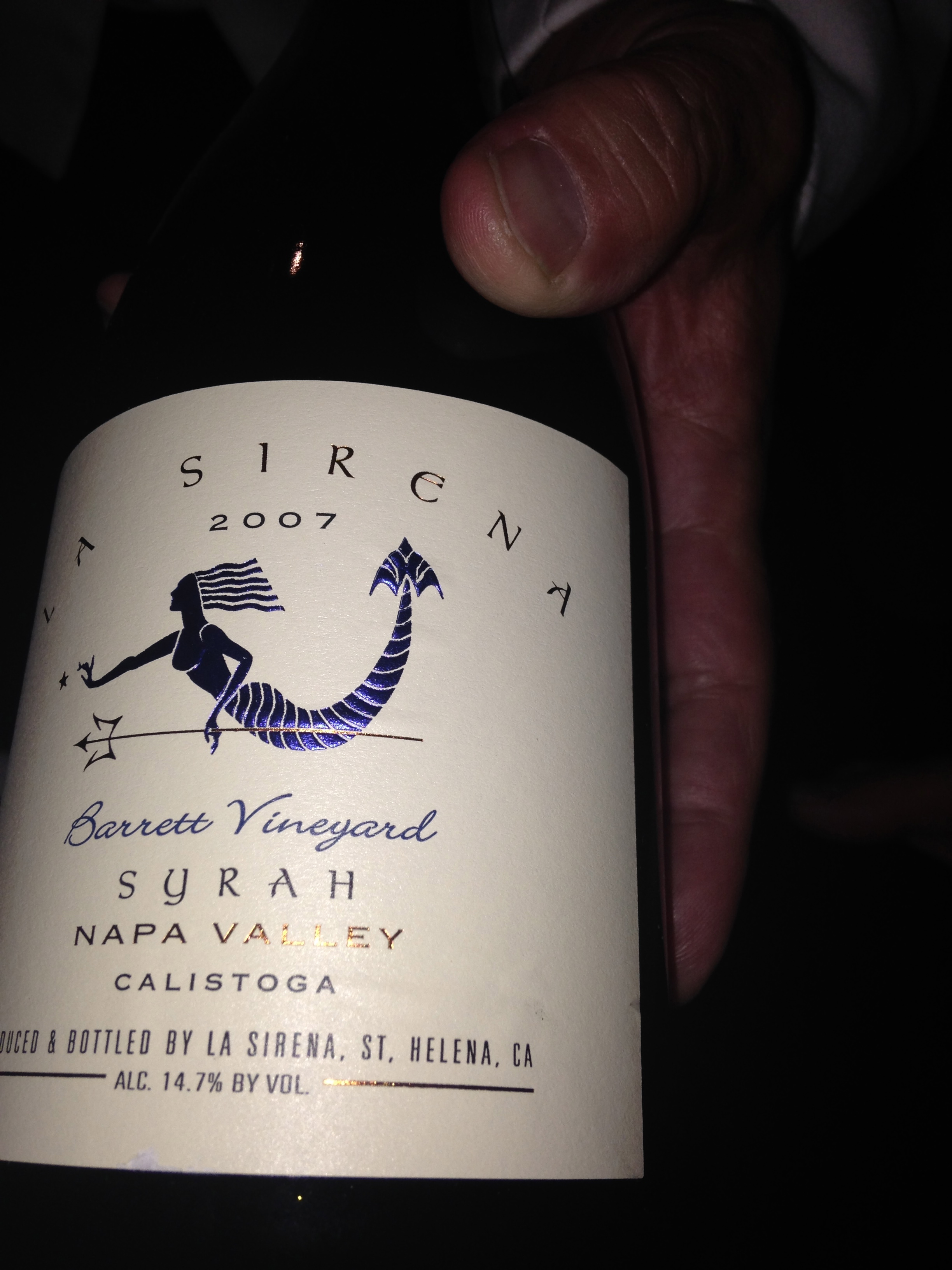 The name “La Sirena” means “the Mermaid” in Spanish and Italian. The winemaker, Heidi Peterson Barrett, chose it because she is a long time scuba diver and was looking for something fun and magical (like wine) to name the winery.