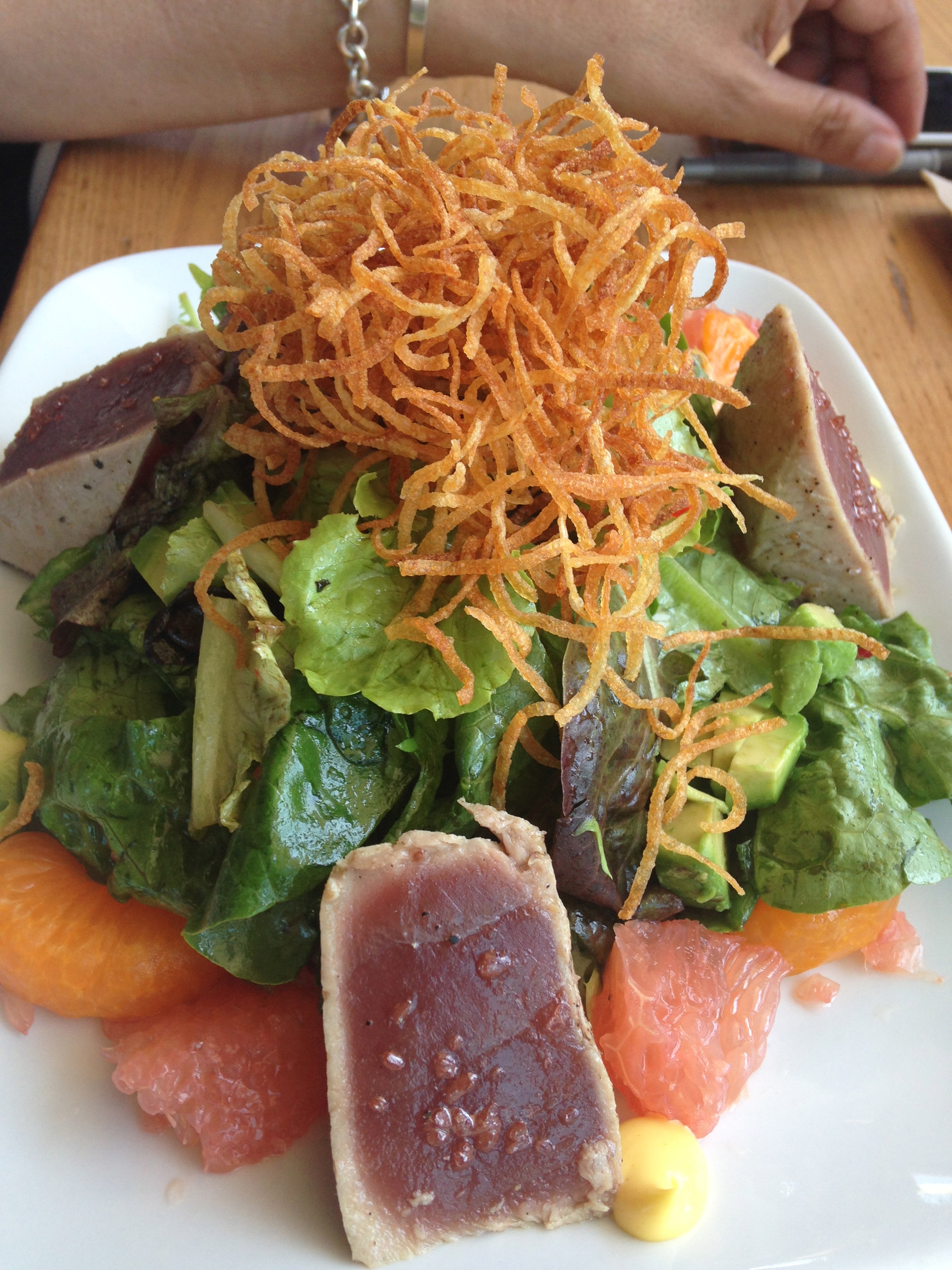 We also ate a citrus Ahi tuna salad, because Ahi is densely packed with B vitamins and vitamins that help maintain a healthy immune system. These vitamins are beneficial for digestion, metabolism, healthy skin and neurological functions.
