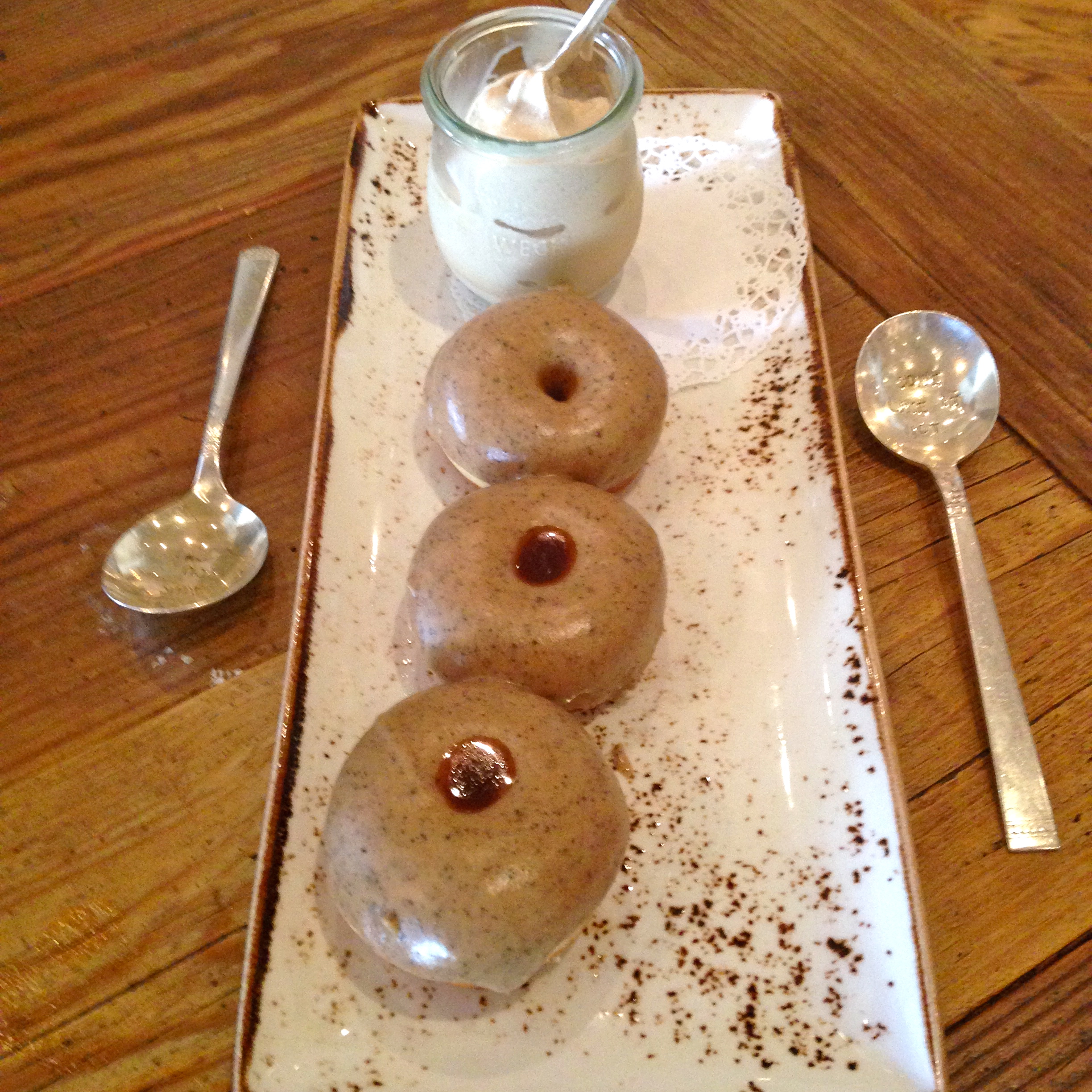 As our brunch items were delivered to the table, a friend approached our table and insisted we order the brioche donuts with a brown butter glaze and pool of cinnamon caramel in the donut hole. My husband and I agreed to split one order and take the other two donuts home for later. The plate of fresh donuts arrived with a dish of an exquisite soft-serve espresso ice cream. It was a sweet ending to a fun and satisfying Sunday meal.