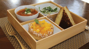 The Parq Bar offers a Tiffin box daily for lunch with soup, salad, sandwich and dessert. The portions are perfect for lunch, and the selections change daily. Sandwiches