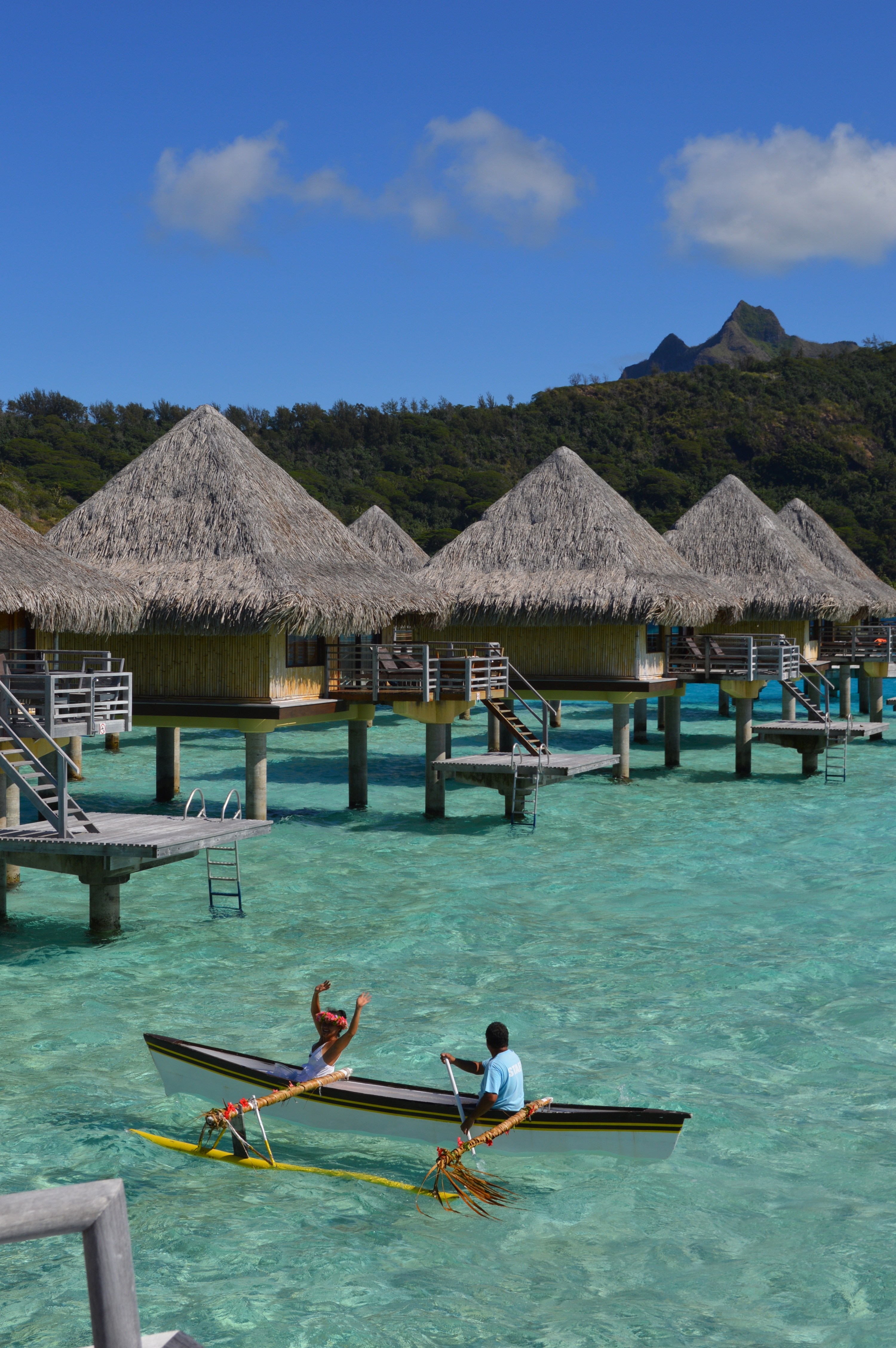 Approaching the resort a shirtless young man wearing a pareu blew into a conch shell to welcome us. It’s a French Polynesian tradition to alert others that guests are approaching the island. After a few blows, he offered us a big, gleaming smile offering a glimmer of the warm Bora Bora hospitality.