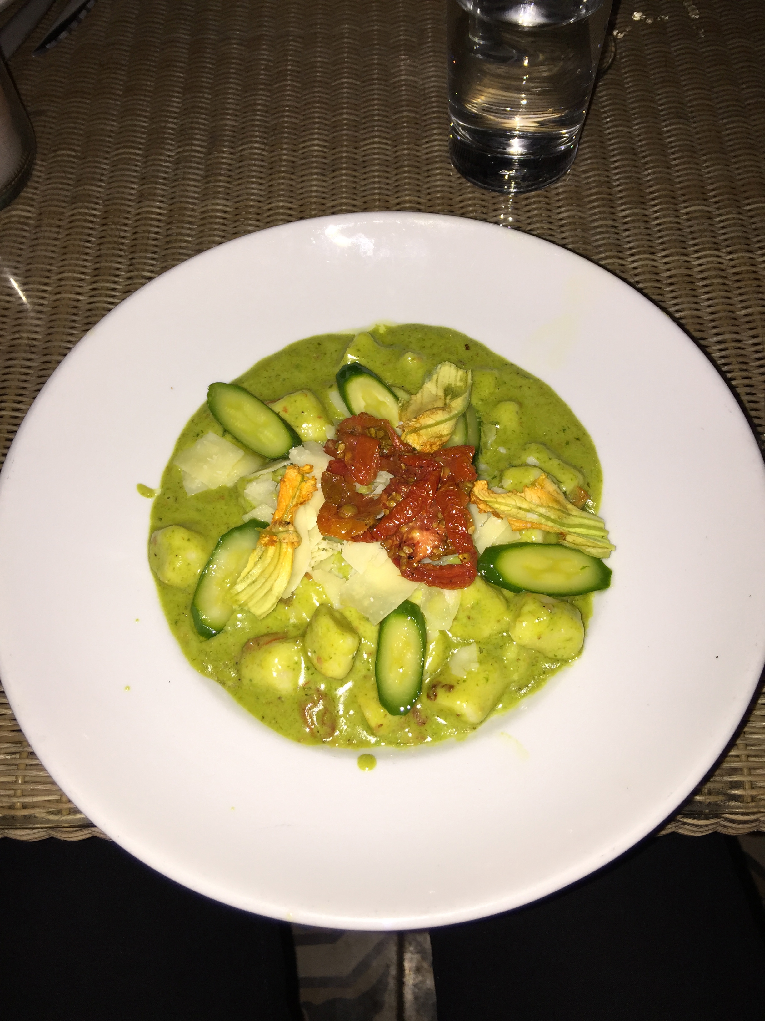 Also delivered to our table was a bowl of gnocchi with thick, soft dough dumplings covered in a basil pesto, crème fraiche and finished with tender market squash.
