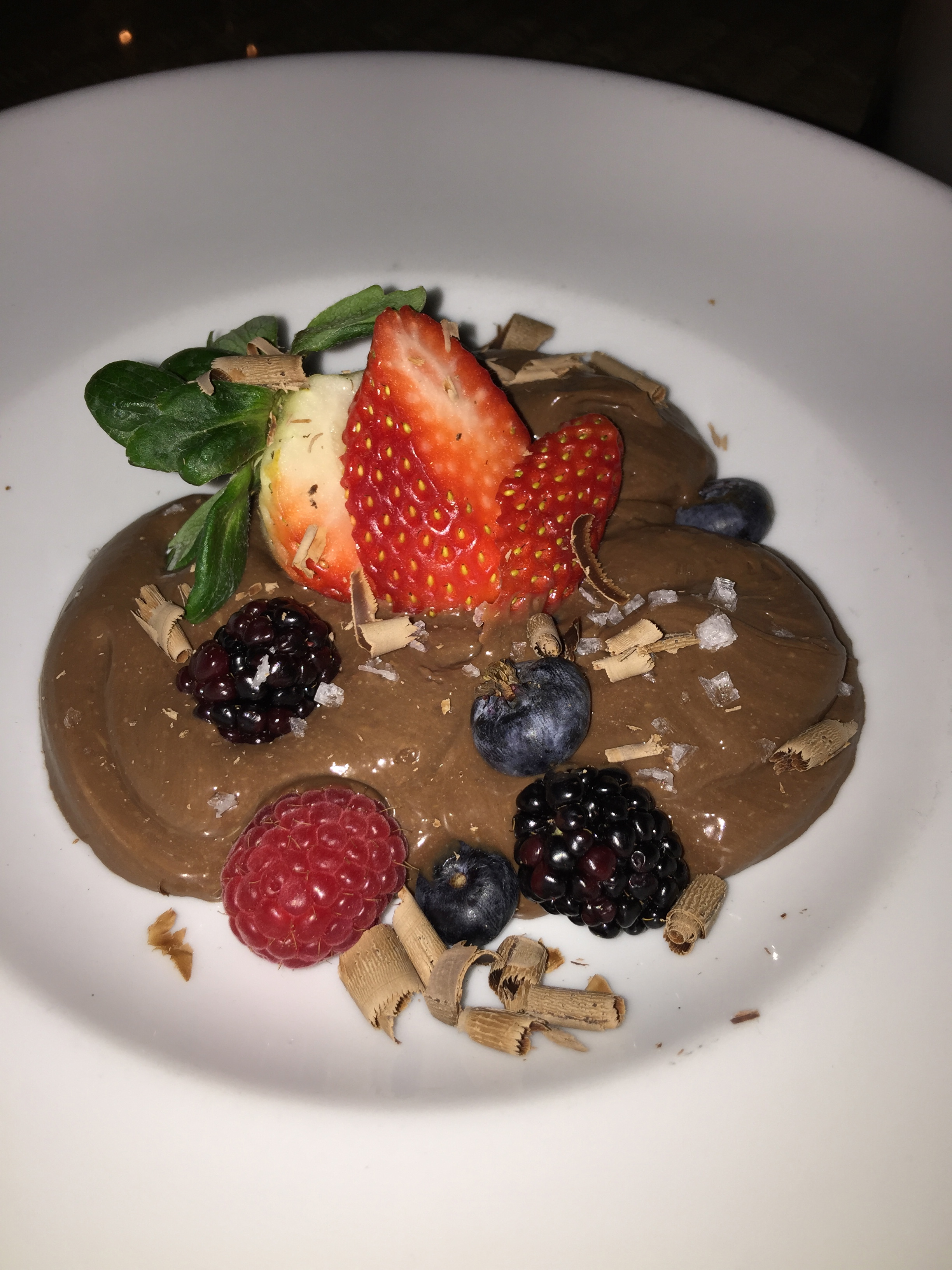 True to a fine French restaurant, Perch does serve a delicious chocolate pot de creme made with Valrhona chocolate custard, strawberries and blueberries and a sprinkling of fleur de sel.