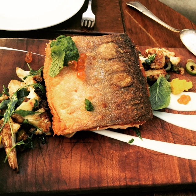 Feeling pretty satisfied, we ordered just one more dish, the cast iron roasted Arctic Char served with caramelized cauliflower, golden raisins, pinenuts, preserved lime, salmon roe, mint pistou. The mint was fresh and clean tasting and I enjoyed it with the moist fish with a crispy skin.