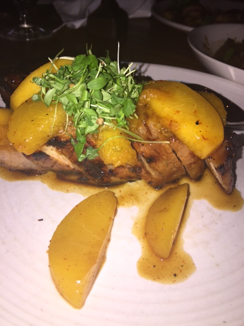 Next a large and spicy grilled Berkshire 14 oz. pork chop arrived with poached peaches and a Thai chile lime sauce. It’s a big, spicy and hearty dish.