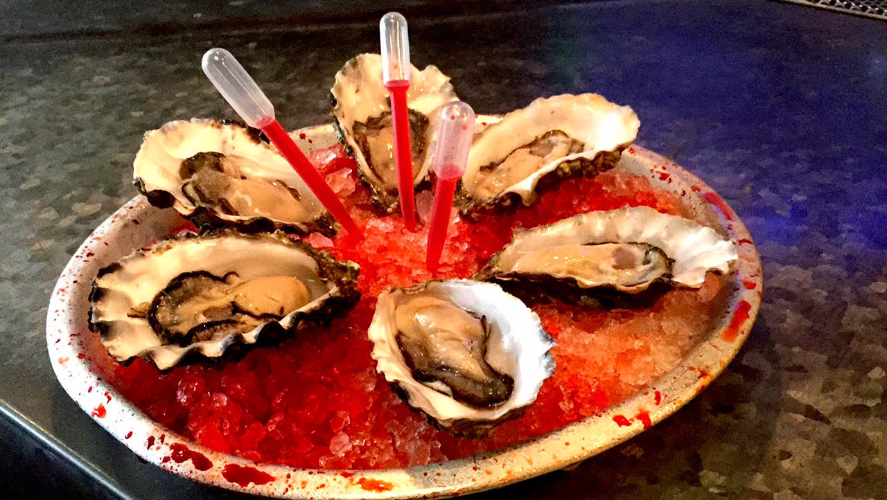Executive Chef Joel Miller offers a bottomless BLACK punch named “Heaven’s Gate Punch” made with Rum, Candy Corn Simple Syrup, Lime Juice, and Squid Ink for $14 during dinner service on October 31. The restaurant is also offering oysters for $1 all night that is served with blood colored Mignonette made with hibiscus and annatto. www.TheWallaceLA.com.
