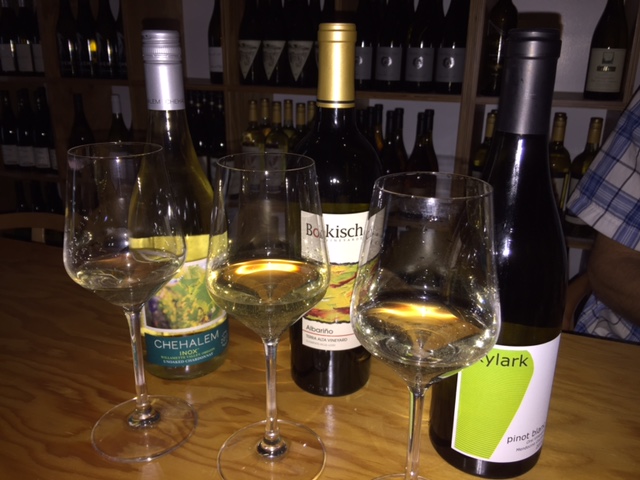 My favorite of the white wines was from Oregon’s Willamette Valley Chehalem Chardonnay. It was as good or better than any French Chardonnay with its white peach nose, hints of vanilla and no oaky notes. I should have bought a few bottles of this liquid light gold and will have to go back for more. Doug brought a jam jar filled with Marcona almonds dusted with rosemary and sea salt to nibble on while we enjoyed our tastings.