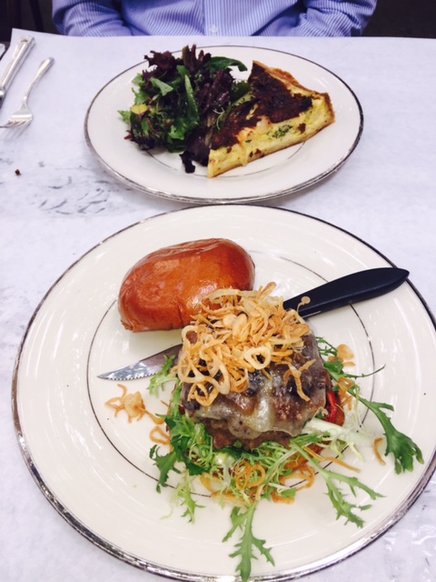 I wanted to order the exquisite Croque Madame again. It’s sliced smoked ham is grilled with melted Gruyere cheese, Bechamel and topped with a sunny side egg. Instead, I ordered the juicy Terrine burger with truffle butter and cheese, a delightful aioli, flash fried onions and cured tomato jam. WOW! That jam just makes this burger so gourmet tasting, especially with the soft brioche bun.