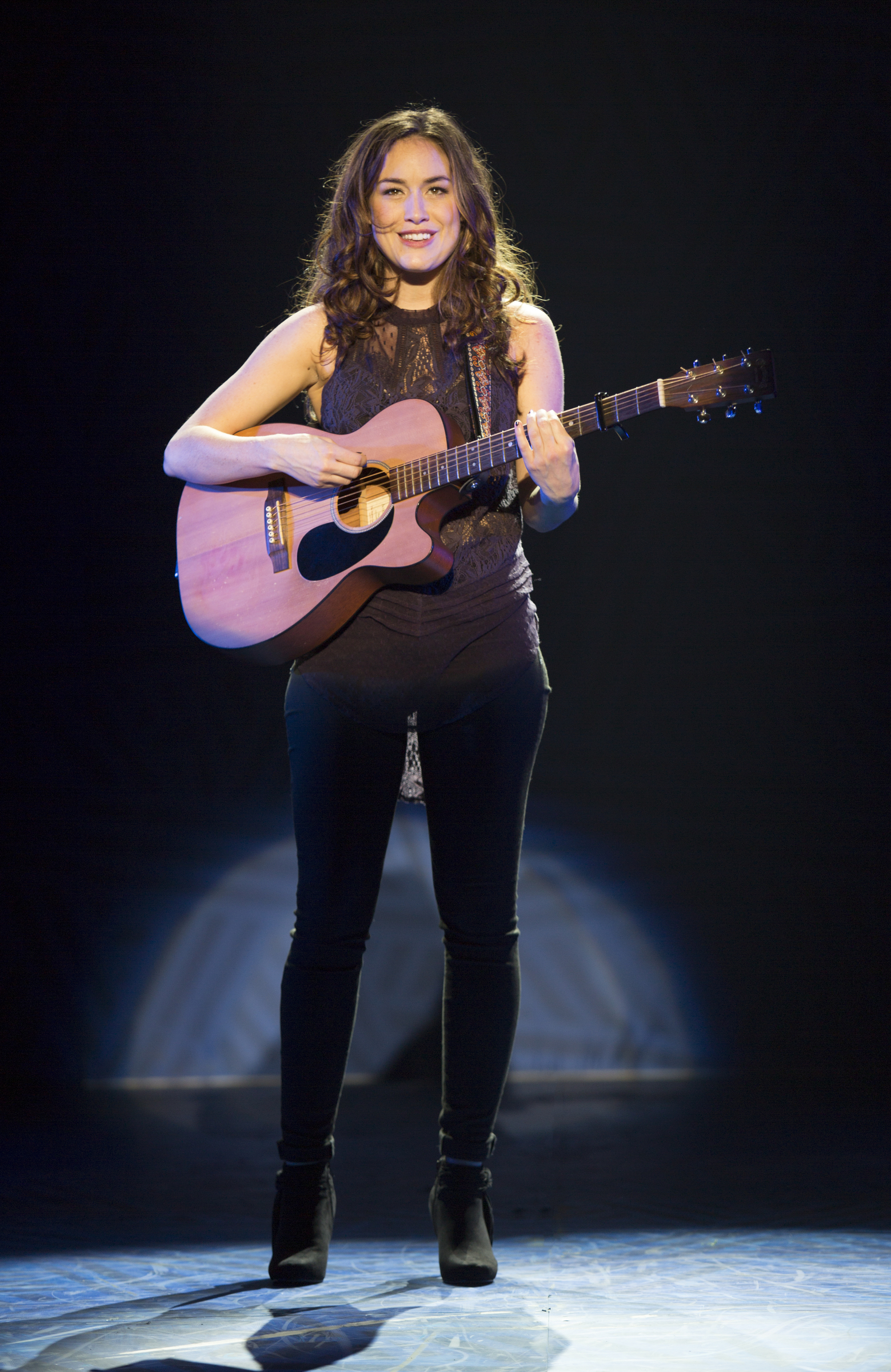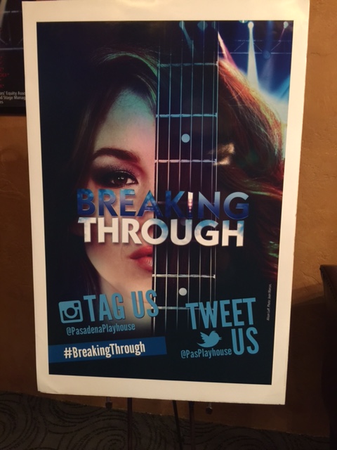 At opening night of the edgy pop-rock musical Breaking Through, I sat in the Pasadena Playhouse mesmerized by lead actress Alison Luff’s melodic voice. She sat on an empty stage with a white spotlight shining down, and she played the guitar while singing the first song, Breaking Through. Later in the song a back curtain parted and a six piece live orchestra appeared on a second level stage, joining Luff in playing the music to the lyrics written by Cliff Downs and Katie Kahanovitz.