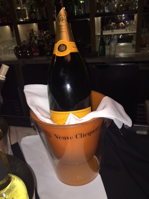 The restaurants culinary ethos is signature olive oils, in lieu of butter or cream. Trays of paper-thin zucchini carpaccio were served at the cocktail reception with a squeeze of lemon and dots of fruity picholine olive oil from the South of France. The dish was adorned with sweet toasted pine nuts and a few shavings of Parmesan cheese (The recipe is in the cookbook). We nibbled on this and other bite-size appetizers while sipping Yellow Label Veuve Clicquot champagne.