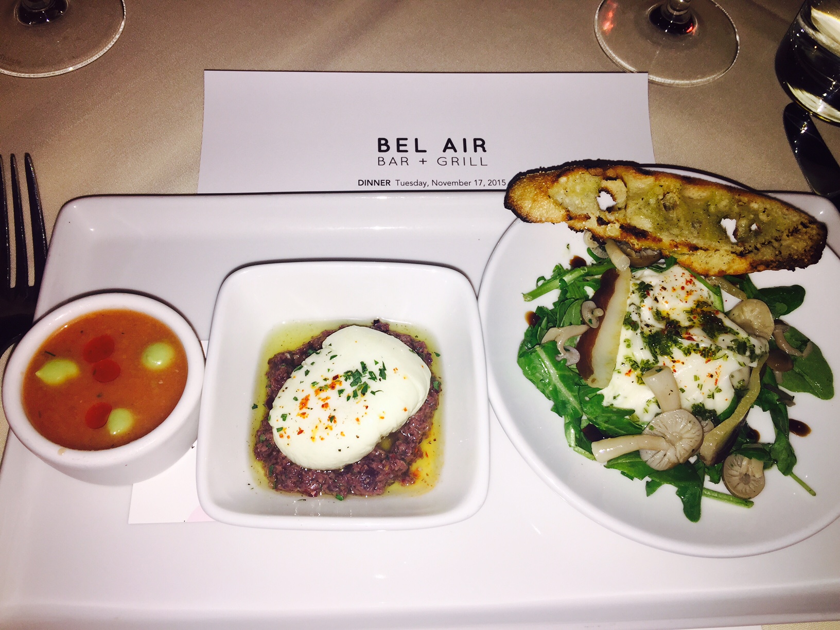 Our next course was a colorful salad sampler trio, including the restaurant’s classic chopped salad that first appeared on the menu back in 1997. SInce it’s a Bel Air community favorite, Lord and Emerling kept it on the menu, and just heightened it with carrots, corn, garbanzos, Parmigiano-Reggiano and a sprinkling of honey balsamic on top. It was a real crowd pleaser the night I dined.