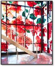 At night, the nearby Chevron gas station’s bright lights, backlight the exquisite flowers on glass creating a visually beautiful moment as you walk in the door.