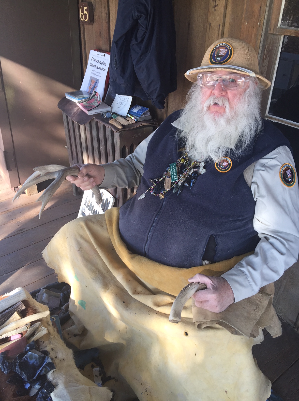 On our way, we stopped to talk to volunteer Joe Moore to hear about his Flintknapping Stone Tools, and watch a demonstration near the Borax Museum. He sits and chats with visitors every Fridays through Mondays from 9 a.m. to 3 p.m. This Santa lookalike is an expert on archaeology, and makes learning fun.