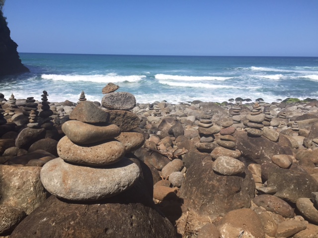 After a swim, pack a lunch and get back into your car and drive North to the Kalalua Trail to hike along the Na Pali coastline. Parking can be tricky, since this is a popular spot for locals and visitors. The hiking trail maneuvers up and down on red dirt and rocks. I recommend bringing or finding a walking stick for balance. There are half mile markers along the way to let you know the distance you have walked. If you are adventurous, walk two miles to Hanakapi Beach. The views from this trail are breathtaking through streams, lush tropical forest and stunning coastline vistas.