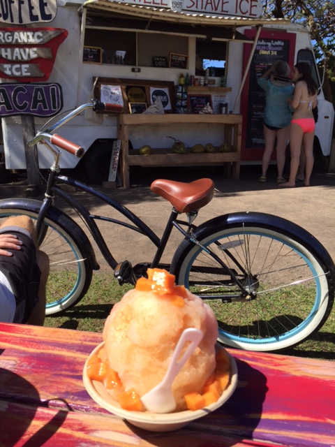 A must when in Kauai is to buy shaved ice for a refreshing afternoon treat. In the town of Hanalei is the Wishing Well Shave Ice truck. Shaved ice is not a snow cone, it’s powdery ice shaved from an ice block. The organic flavors include starfruit, papaya, coconut, mango and guava. They also put fresh fruit on top of the ice for a healthy snack.