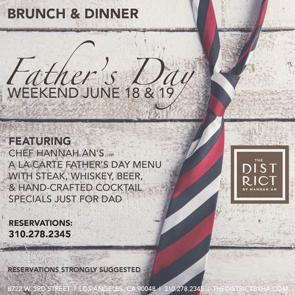 Chef and restauranteur Hannah An brings Vietnamese soul to fried chicken on Father’s Day weekend. On June 18 and June 19, An makes a Szechuan spice brined fried chicken and biscuit with buttermilk gravy and a sunny-side up egg. Bring dad for brunch or dinner. Dad will enjoy one of the special whiskey, beer or hand-crafted cocktails. Hannah’s special secret sauces and spices are available for purchase at the restaurant. 8722 W. 3rd St. (310)278-2345.