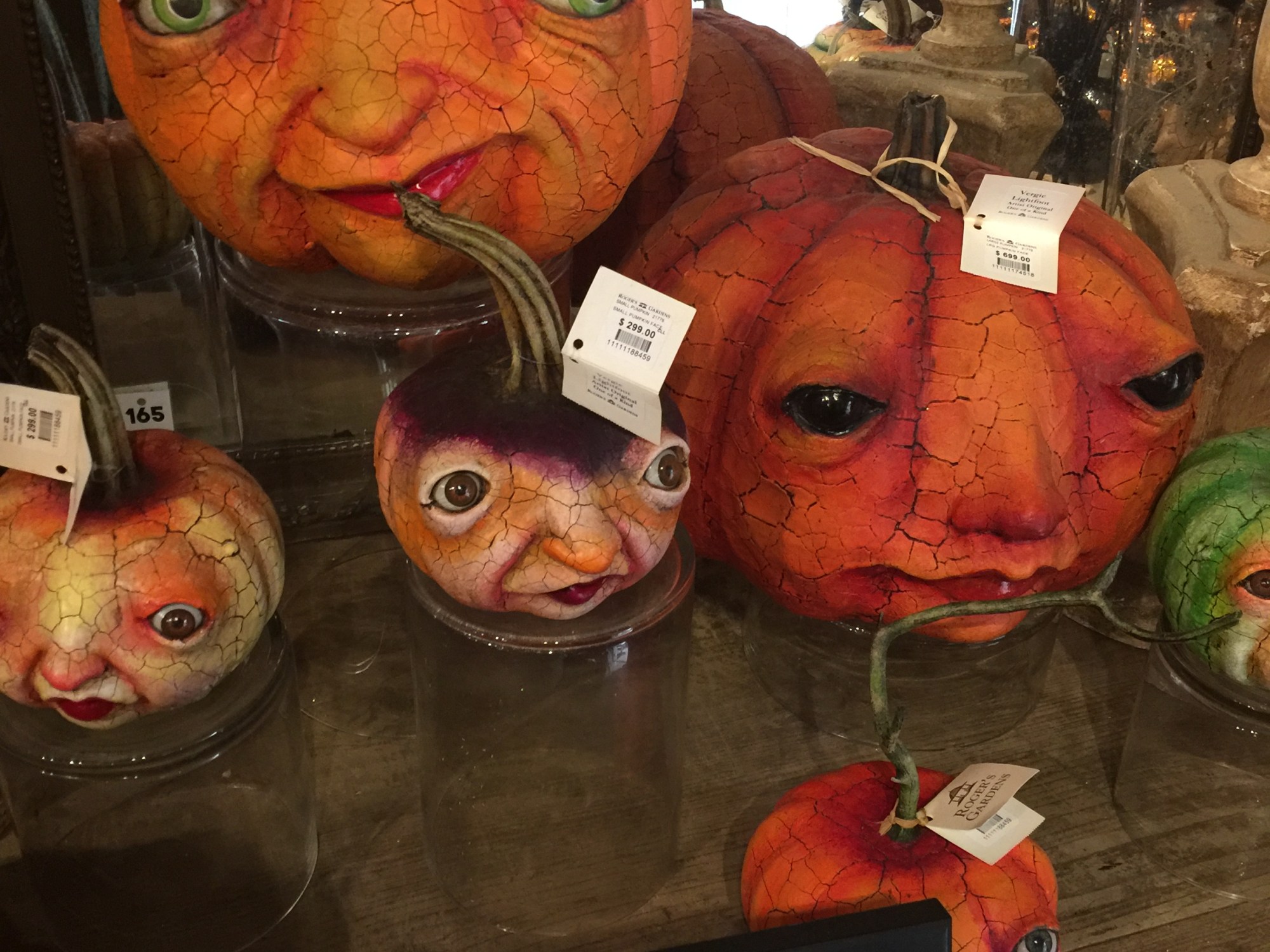Beside scary items, there are also whimsical pumpkins of every color and an assortment of gourds. They even have Fall and pumpkin theme wreaths for your door.