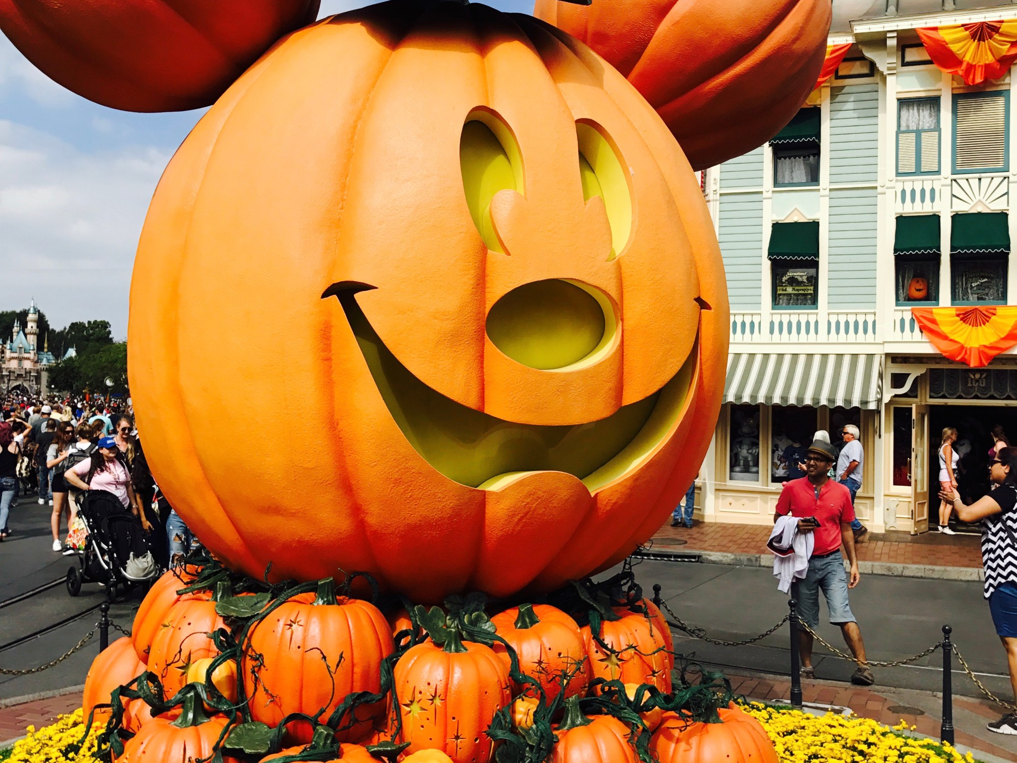 Entering Disneyland first, Main Street U.S.A spot the giant Mickey jack-o’-lantern and pumpkin festival for your first photo opportunity. Both theme parks are decorated with cheery autumn décor, Disney characters in their costumes, seasonal Halloween overlays on select attractions, seasonal treats and more. Halloween Time officially begins in mid-September and continues through October 31. If you’re looking to beat crowds, weekdays are a great time to experience Halloween Time with yellow and orange banners hanging from the eves and lamp posts. Thousands of lovely pumpkin decorations are displayed in windows.