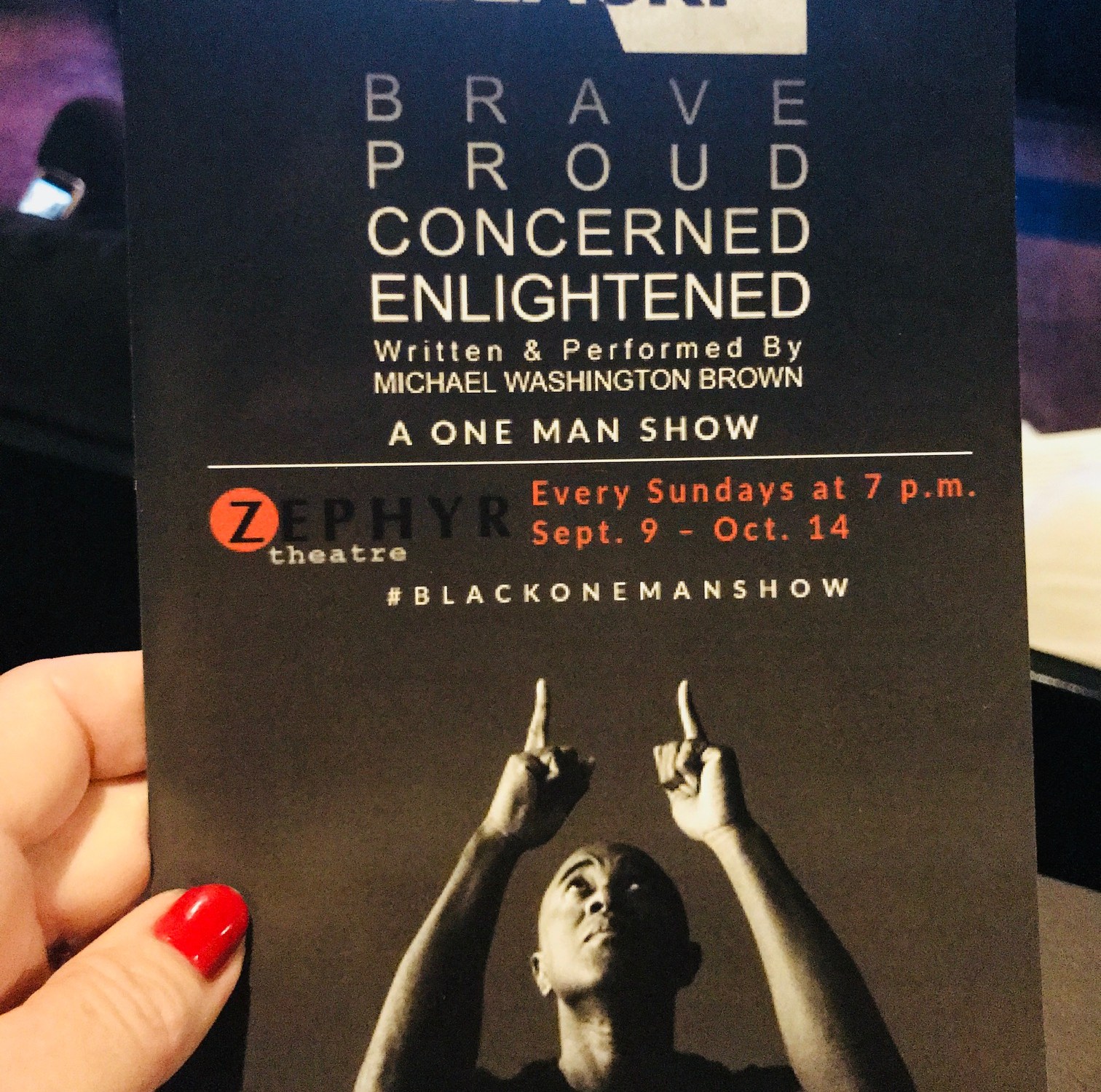 Sitting in the Zephyr Theatre to watch a touching one man show by British playwright, actor and storyteller Michael Washington Brown, I felt as if I was attending a Black Studies class at a local college.