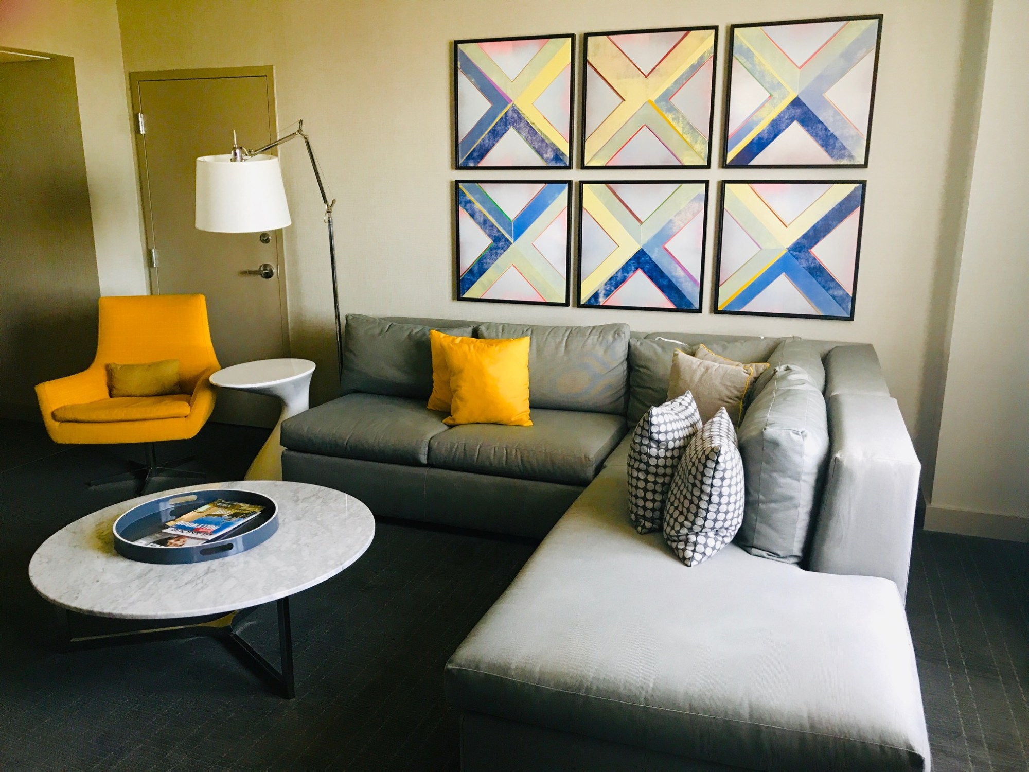 Taking a tour of the property by a friendly Hyatt Regency staff member to see a guest room and suite. She explained that The Hyatt Regency LAX is part of a growing trend of airport hotels becoming more upscale to appeal to travelers who want to stay close to an airport and not miss their flight due to traffic, long lines at security or delays.
