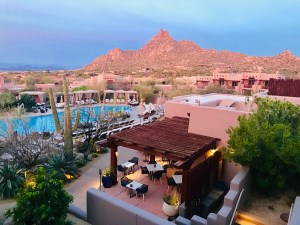 While leaving the spa, we noticed the staff was setting up for a wedding on the Fountain Terrace with Pinnacle Peak as a backdrop. The resort’s wedding team provides everything a bride and groom need for an intimate Sonoran wedding to a lavish Grand Ballroom style epic event.