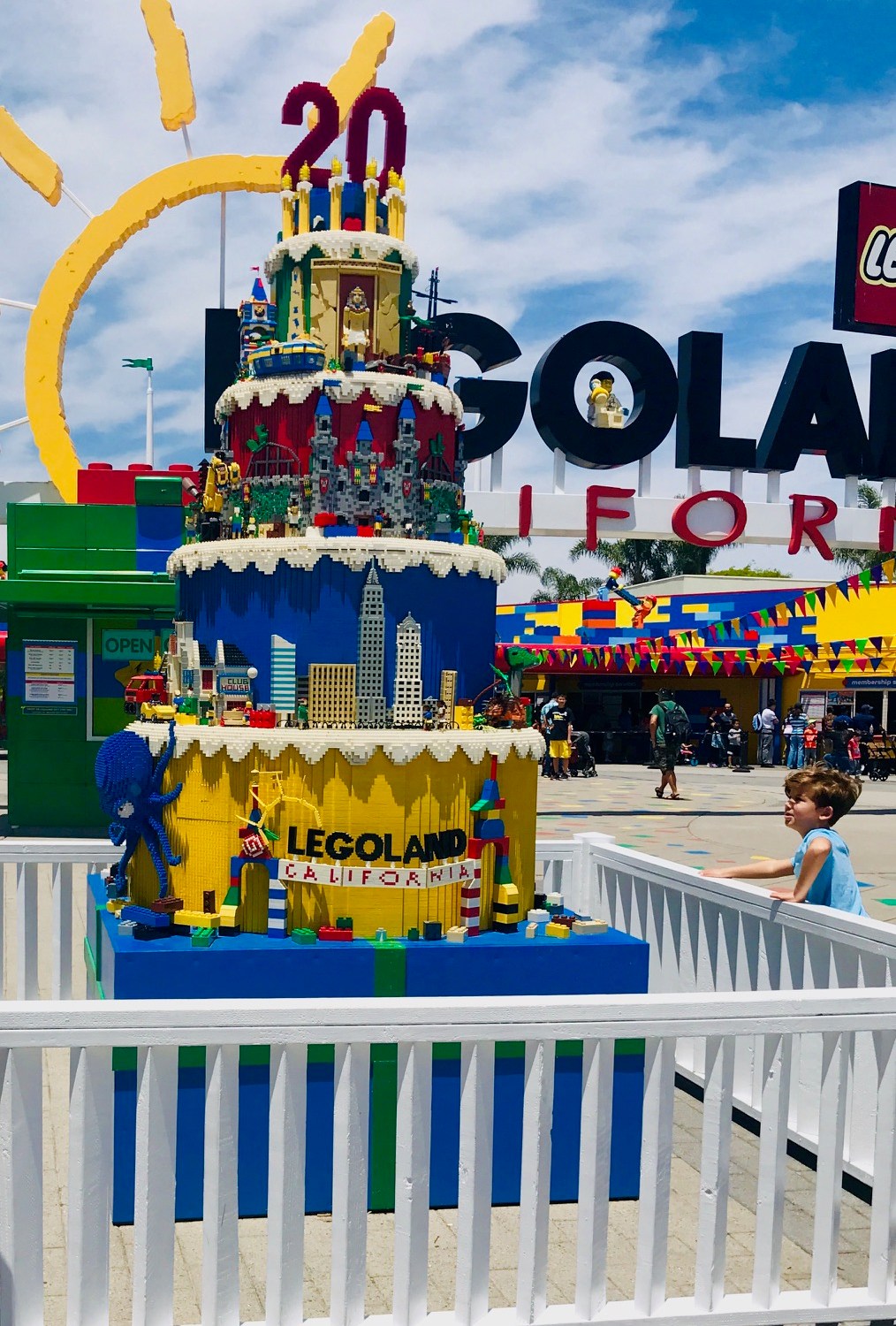 Checking into the festive lobby at the LEGOLAND Hotel in Carlsbad, California, I noticed a some of the hotel rooms had a “Happy Birthday” banner displayed on the door. LEGOLAND is celebrating it’s 20th year with banners, balloons, entertainment and special events throughout 2019.