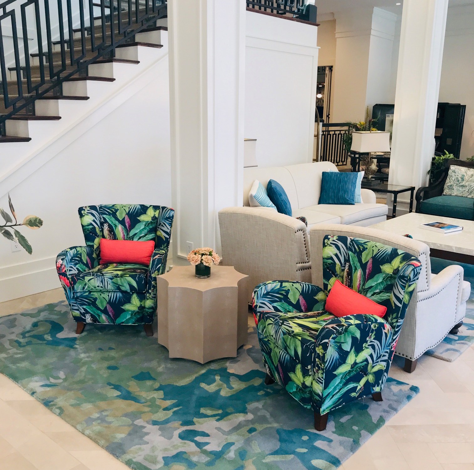 Walking into the soaring lobby, one can immediately see the exceptional attention to detail in the elegant beach decor and design. Soothing marble floors, and a color palette of cream, green and blues create a relaxing lounge area. Soon Avalon’s newest restaurant PKW Eatery + Bar, honoring island developer Philip Knight Wrigley, will open inside.
