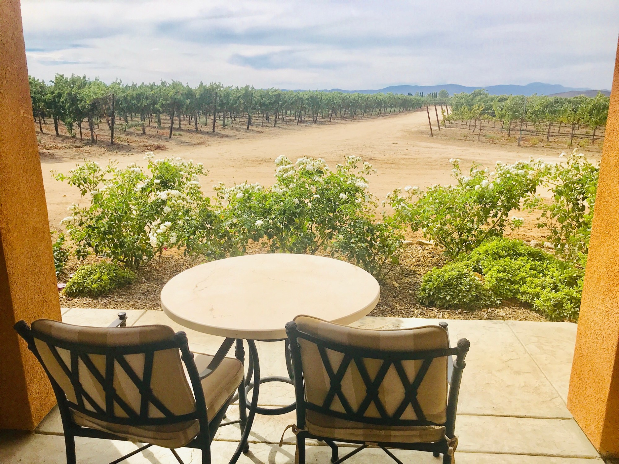 Early in the morning, colorful hot air balloons fly right over the grapevines at the Carter Estate Winery and Resort in Temecula Valley. Each of the Tuscan-designed villas on the estate have an outdoor patio to sip coffee and watch enormous balloons soar by.