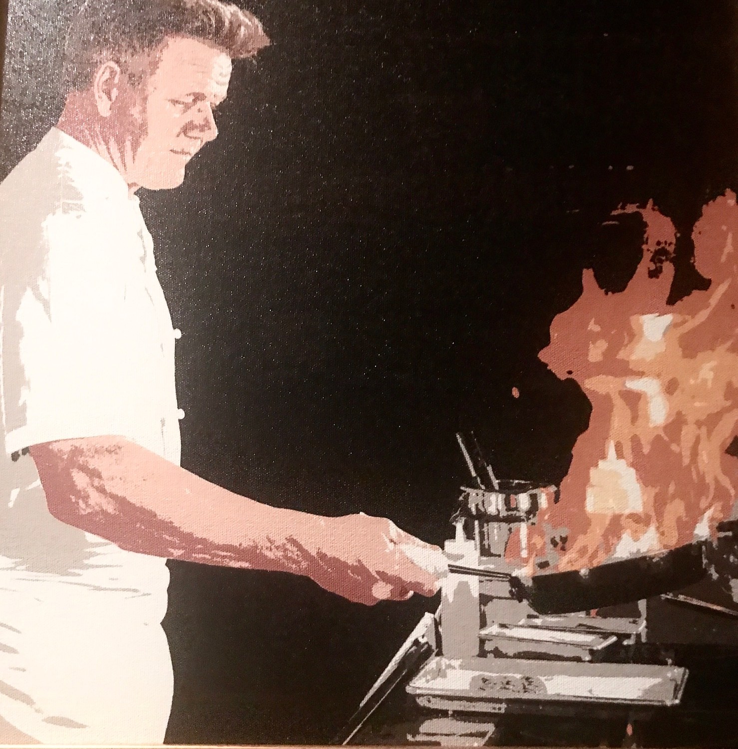 Celebrity Chef Restaurant Gordon Ramsay Steak is a fine dining steakhouse inside Paris Las Vegas Hotel and Casino. It’s Ramsay’s first restaurant in Las Vegas, originally open in 2012. Walk through a red neon ‘chunnel’ entrance into the bar and fiery red and black two level dining room interior. Artwork on the walls feature the celebrity and internationally renowned chef. Cuts of prime beef that are aged to perfection are presented to each table on a rolling cart. Servers explain each cut for guests to learn about before selecting.