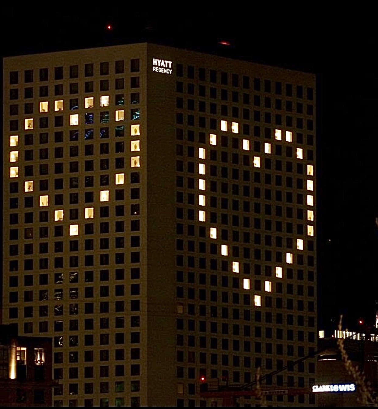 Several Hyatt properties around the globe have arranged to keep their lights on and window shades up to send love to guests, colleagues, the hospitality community and healthcare providers.