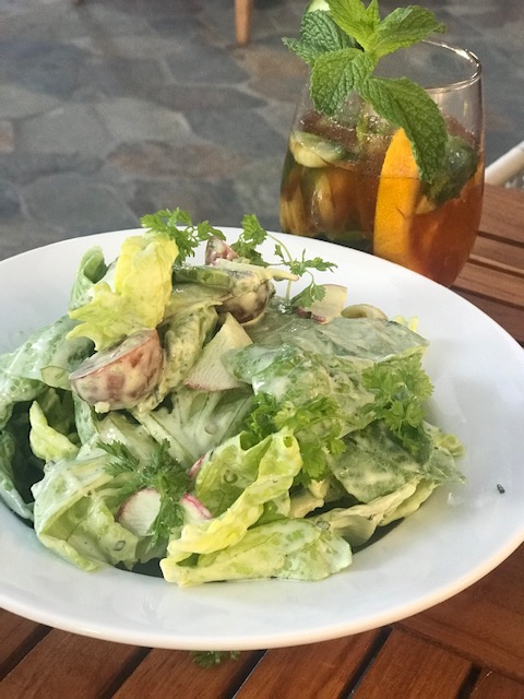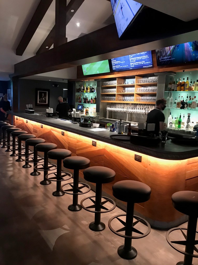 Our server, Molly, wearing a face mask and clear plastic face shield for added protection, introduced herself and recommended we start with one of their specialty cocktails. We opted for a refreshing Pimm’s Cup made with amber colored Pimm’s No 1, ginger ale, mint and cucumber, along with Take the Mickey, which is similar to an Aperol Spritz made with Prosecco, Lo-Fi Amaro and a double orange peel twist. It offered the aroma and flavor of sweet citrus fruit with hints of ginger and spice.