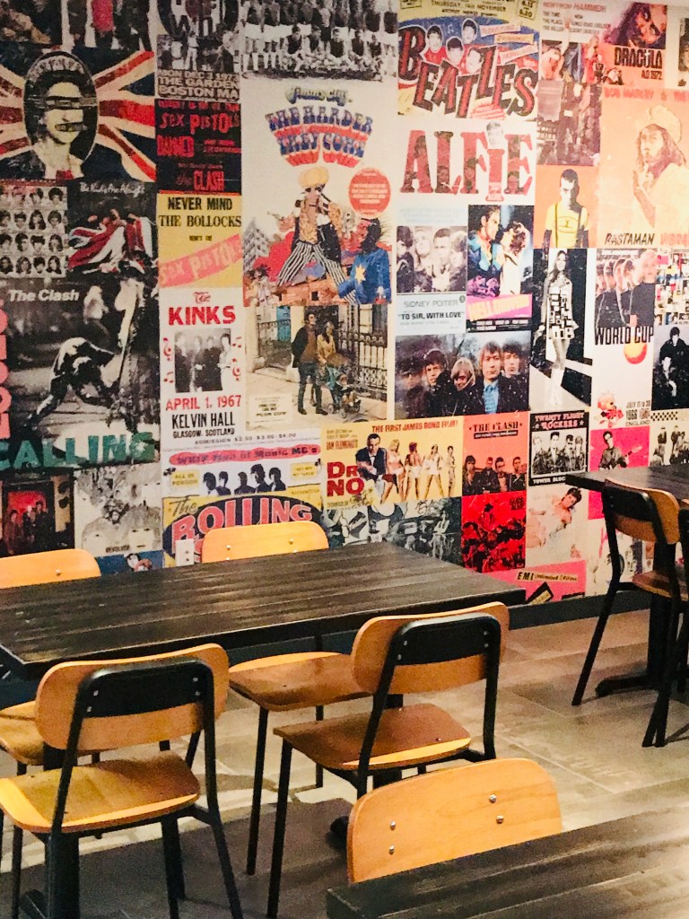 The space has a distinctive U.K. rock ’n’ roll vibe, with one wall displaying an artful collage of British movie and concert posters, and British album covers screenshot on the side of the pub menu. Twinn curated the background music that includes songs by well-known British bands the Who, the Rolling Stones and the Kinks. He said live music performances would eventually begin happening outside on the nearby patio.