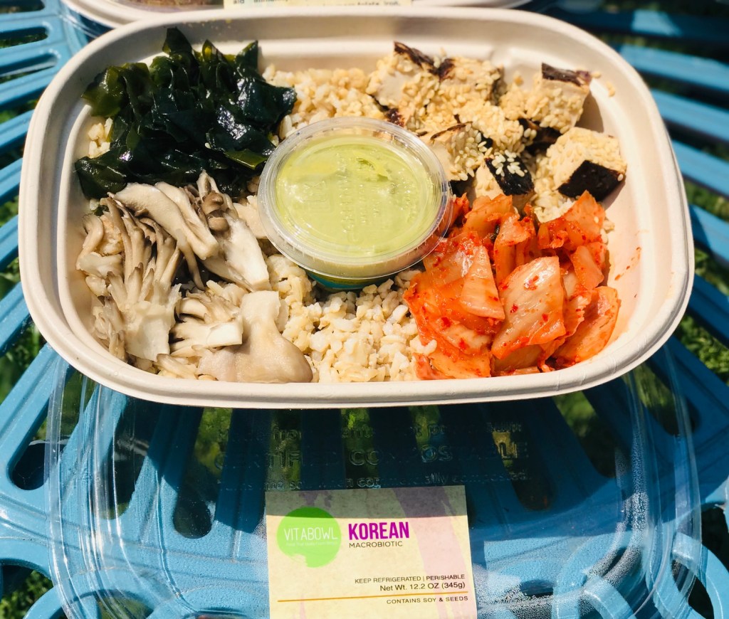 The Korean Bowl is made for macrobiotics nutrition that is easy on digestion, and provides an energetic balance in the body. It had pizzazz, due to the sprouted brown rice, kimchi, marinated Tofu, pickled enoki mushrooms, Wakame seaweed, and silken chive creme. I really liked the firm tofu.