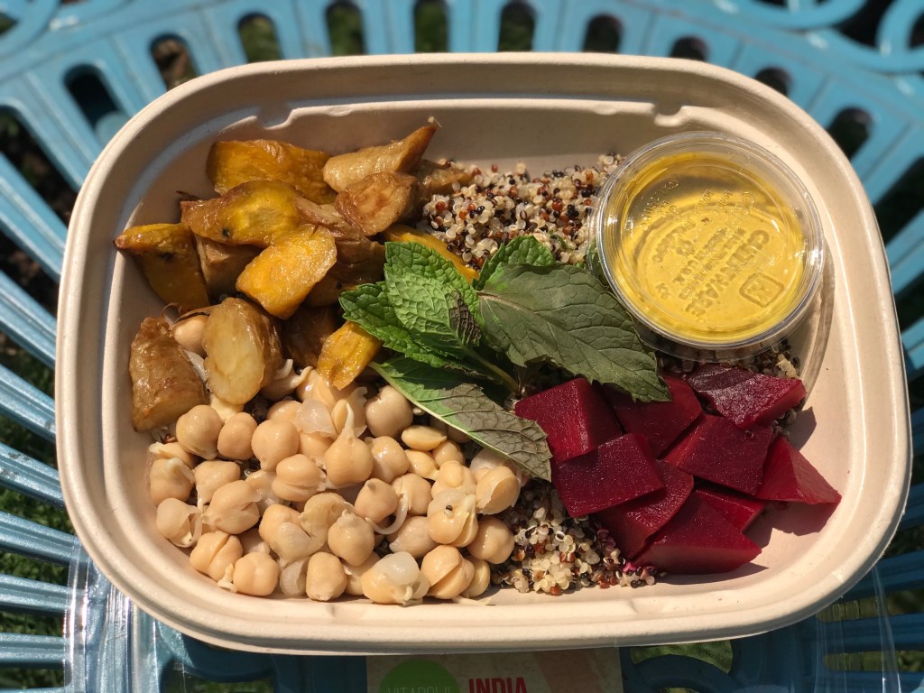 My favorite was the India Bowl. Touted as helping to fight inflammation, the nourishing turmeric curry sauce, sprouted chickpeas and fresh moringa- one of the most nutrient-dense foods on earth, made me feel great afterwards. It’s a colorful and appealing bowl with ingredients that includes tri-color quinoa, tender heirloom carrots, sprouted chickpeas, beet pickled turnips, pistachio for texture, mint, and a coconut curry sauce.