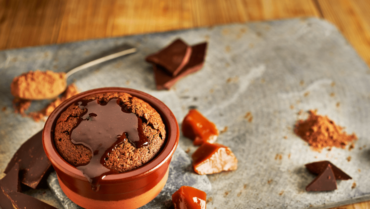 The London based dessert company Pots & Co makes sustainable Colombian cocoa based chocolate fudge lava cake.